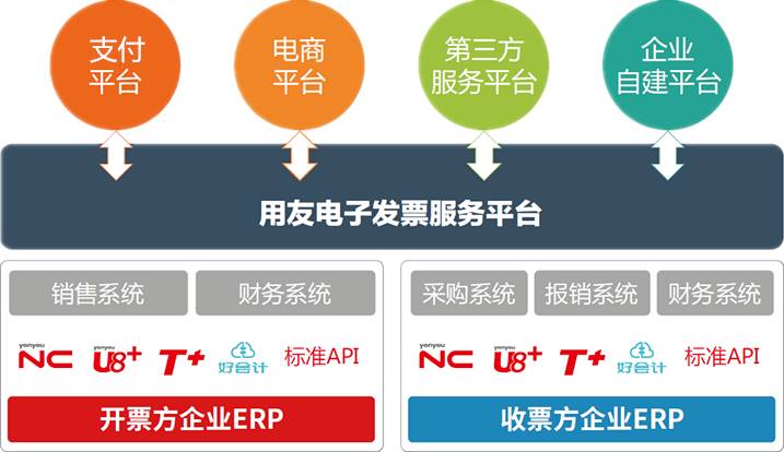 用友电子发票服务平台是由用友集团打造的全国性电子发票云服务平台,采用现代信息化技术手段实现发票的无纸化管理,解决企业交易中发票使用成本高等难题;全方位实现发票的网络化、电子化,对发票信息真正实现全流程的闭环式管理。可实现与企业ERP系统无缝衔接,实现开票、流转、收票、报销、入账、归档的一体化流程,降低企业运营成本,提升企业运营效率。